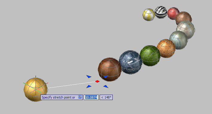 Just to prove it all works, here are a couple of screenshots of some linked spheres with pretty materials attached. By the way, the links will also work when the movement is in full 3D - not just planar to the current UCS: