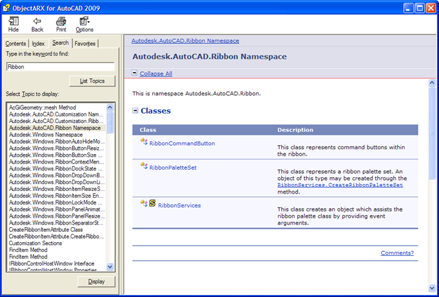 Last but by no means least, the ObjectARX SDK for AutoCAD 2009 includes a brand-new AutoCAD .NET Reference. It's really nice!
