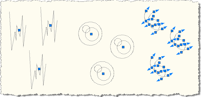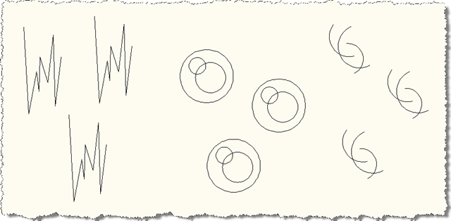 Let's define and insert a series of three blocks: LINES, ARCS and CIRCLES (no prizes for guessing which is which :-):
