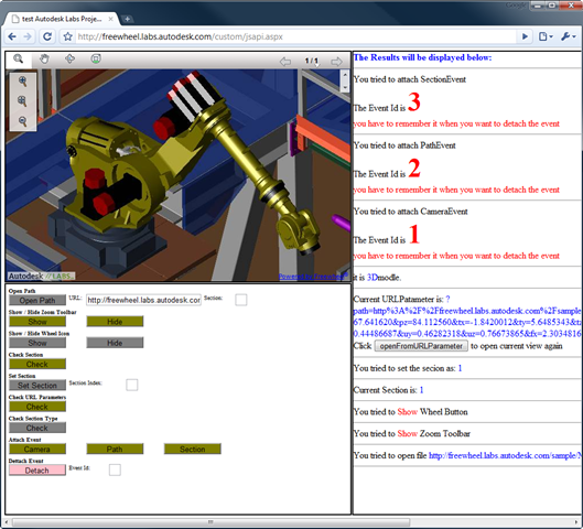 The best way to see the capabilities of the new Javascript API to Project Project Freewheel API test pageFreewheel is to check out this page. I'll hopefully get more time to work on a client-side sample to show this working in the coming weeks, but in the meantime it's very interesting to note - in particular - the ability to receive events fired by changes to the current camera, path or section.