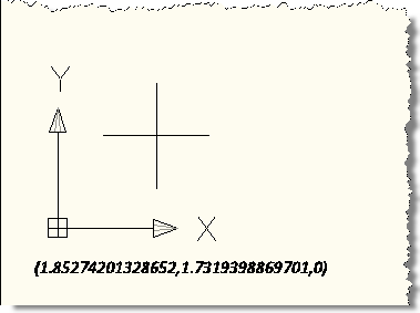 In this simple example, we're implementing a DrawJig - a jig that doesn't host an entity but allows us to implement a WorldDraw() callback for something to be drawn - which draws text at a fixed screen location, with a fixed size and orientation. Our code takes the simple task of asking the user to select a point, and shows the current cursor location during the drag at an offset of 30, 30 from the bottom left corner of the drawing window.