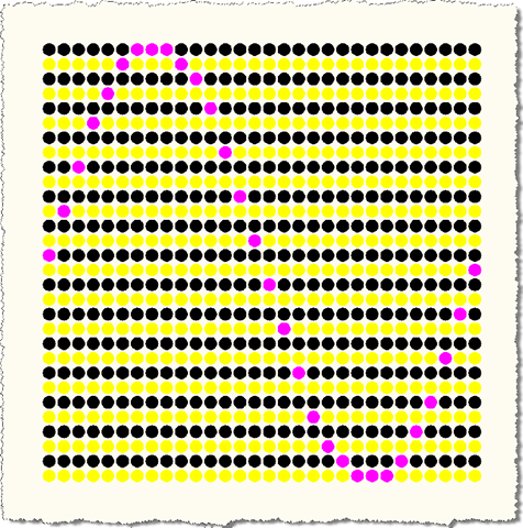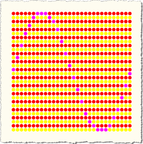 Here's the idea... we're going to have an outer transaction, within which we're going to create a grid of filled circles (hatches, in fact). We're then going to nest a number of transactions (for now only at one level deep, although there's nothing stopping us nesting more deeply), which modify the colour of various items in the grid.