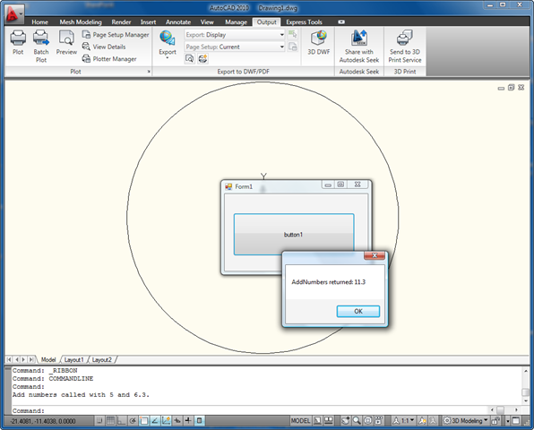 • We're now able to use the MdiActiveDocument property safely, as well as being able to write messages via the editor.