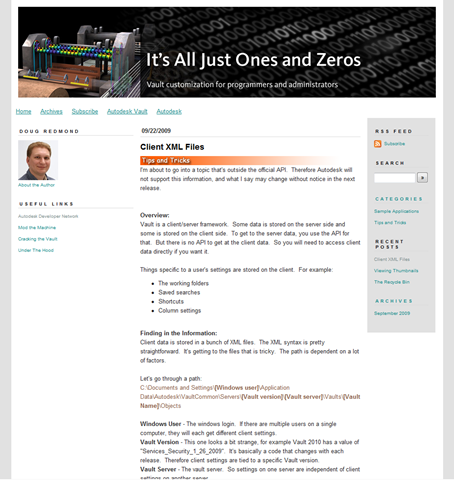 It’s All Just Ones and Zeros: new Autodesk Vault developer blog