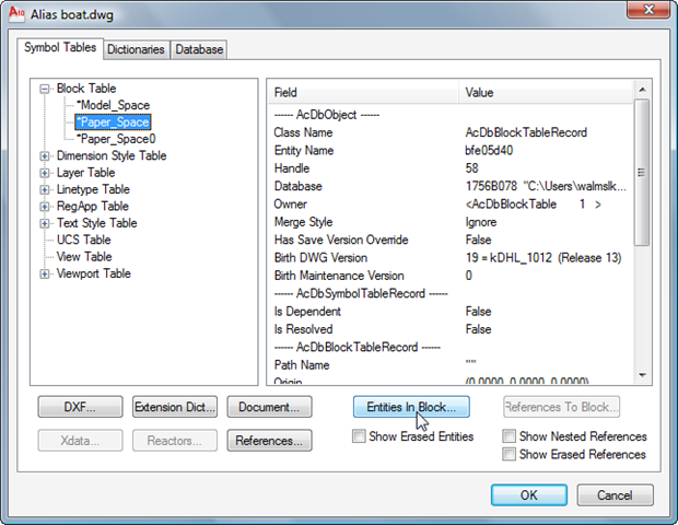 The paper-space block table record contains two entities, one of which (the AliasIllustrationImage) is of interest for what we've been working on and presumably corresponds to our Canvas object: