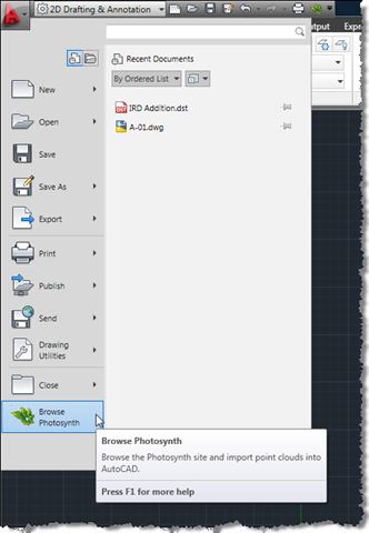 We're going to look at some code that – on initialization of the application – adds an item to AutoCAD's "Big A" Application Menu and to the Quick Access Toolbar (the "quick launch" toolbar towards the left of the main application window's title bar). To solve this I borrowed some code and techniques from a couple of DevNotes on the ADN site: Use the .NET API to add a menu Item to Application Menu (big A) and The arrow of the Dialog Launcher button on my Ribbon panel does not show. It should be noted that this code will need at least AutoCAD 2010 to execute.
