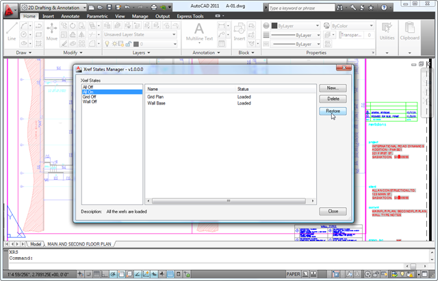 Once you've set up the XrefStates for your project they get saved inside the master drawing, which allows them to be used in future editing sessions. To do this Glenn chose to use Xrecords, which store the data in a relatively open manner (as opposed to it being locked up in a custom object requiring a enabler).