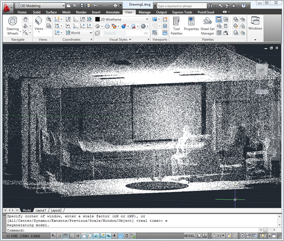 A few weeks ago our friends at FARO sent across a Photon 120 laser scanner to our office in Neuchâtel, and we've just started getting to grips with it (if you want to see more advanced use of this technology, be sure to check out this ADN DevCast). The first thing you tend to do with a scanner is to scan the room you're in, which is about as much as we've done with it until now, but I expect to scan more interesting subjects when back from San Francisco. I especially want to compare and contrast the use of laser scanning with photogrammetry/computer vision techniques, to see the relative advantages of each technology.