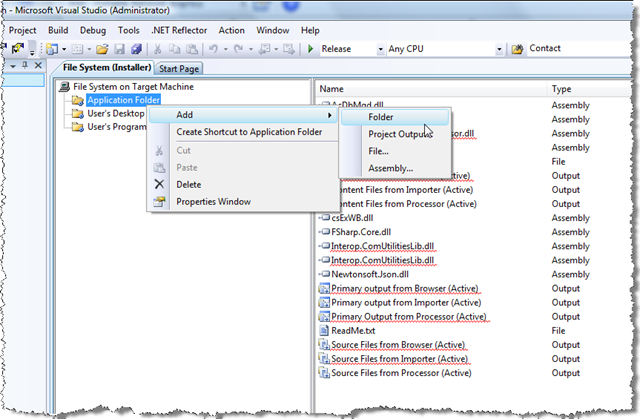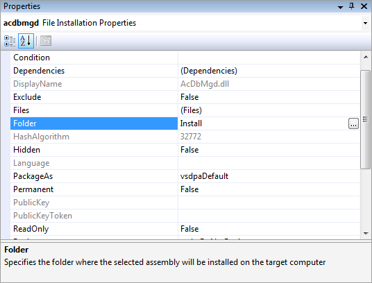 Change AcDbMgd-dll to install to our sub-folder We can also add new files into the installation set directly from this view (by right-clicking in the File System tree and selecting Add, then browsing to the file to be added):