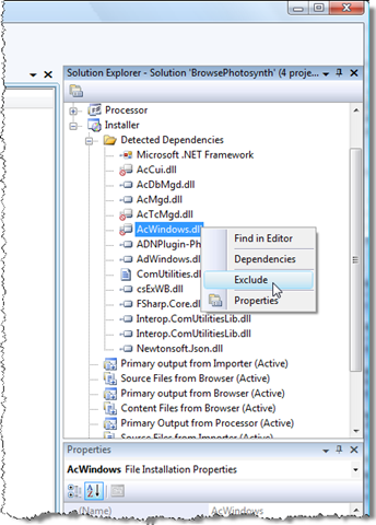 • We have standard AutoCAD dependencies we want to exclude from the installer