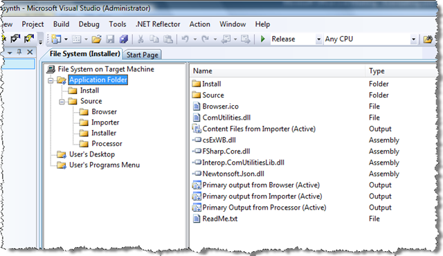 I've taken the liberty of omitting a few steps in the above process, where I added a few files "manually": I wanted to include the overall solution file in the root "Source" folder, as well as the .vdproj file in an "Installer" folder beneath it, but those are changes that are quite specific to my needs and will, in any case, be obvious from the project I provide at the end of the series.