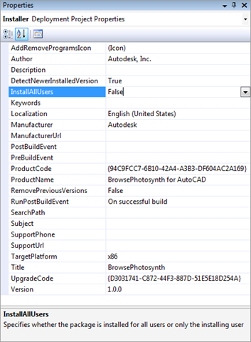 While we remember, we should make sure the default project setting (which will no longer be visible) should be "Just Me". That's the default, if I recall correctly, but you can double check in the Installer project's properties: