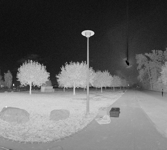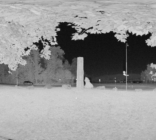As we're both relative novices with this equipment, it took us some work to get to the point where we could reliably run scans without being able to see the results. And despite Bodo's (and to some degree my) efforts, the first scan I took managed to miss the monument completely! Here's the preview image generated by the scanner (which incidentally takes about as long as the scan itself):