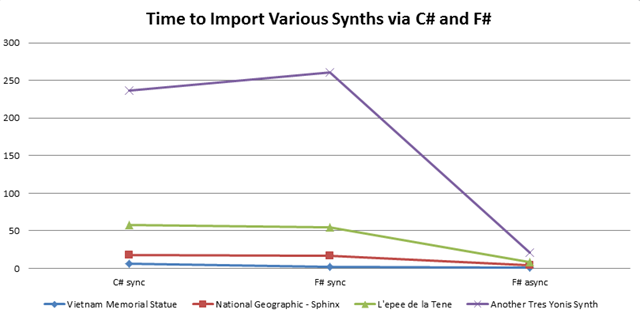 Just to make sure there wasn't any inherent benefit from using F# rather than C#, I also implemented an additional "F# synchronous" mode. The code is provided in the project associated with this class.