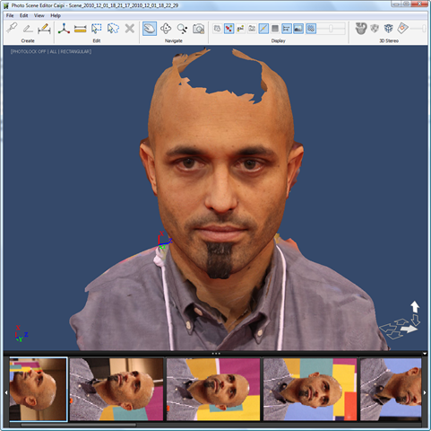 As an example, here's another "capture" of my head, this time taken from just 15 images. I used this example in my class to demonstrate some of the inherent issues with capturing shiny/reflective surfaces ;-), but I know the results would have been better if we'd added a few overhead shots.