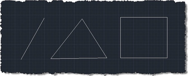 Let's now launch the LINE command, and then call AVG transparently. We'll do so one with the end-points of the line, once with the corners of the triangle and finally with those of the rectangle. We can see we end up with  two lines connecting the mid-points of these shapes.