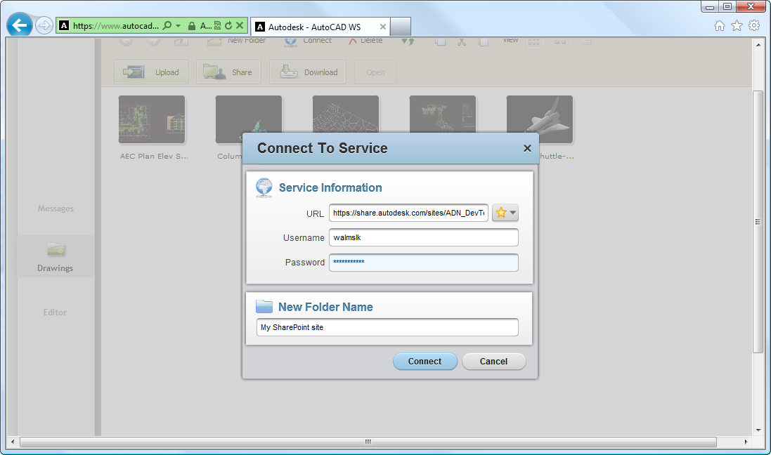 Connect from AutoCAD WS