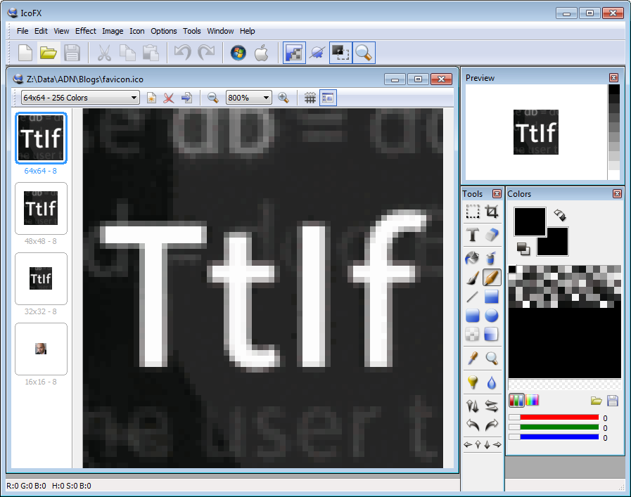 IcoFX with the 64x64 icon selected