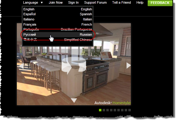 The Russian version of Homestyler has now joined the list of official languages in the product, so there's no need to follow steps 1-3 above to gain access to it (simply click here).