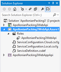 Now that we're ready to publish to Azure, we need to add a deployment project to our solution. Right-click "ApollonianPackingWebApi" in the Solution Explorer and select "Add Windows Azure Cloud Service Project". This will add a new project into our solution.