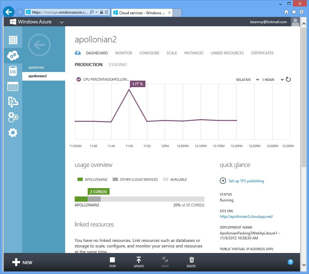 To get information on the web-service's status – including its usage, cost & billing information – you can log into the Windows Azure Management Console: