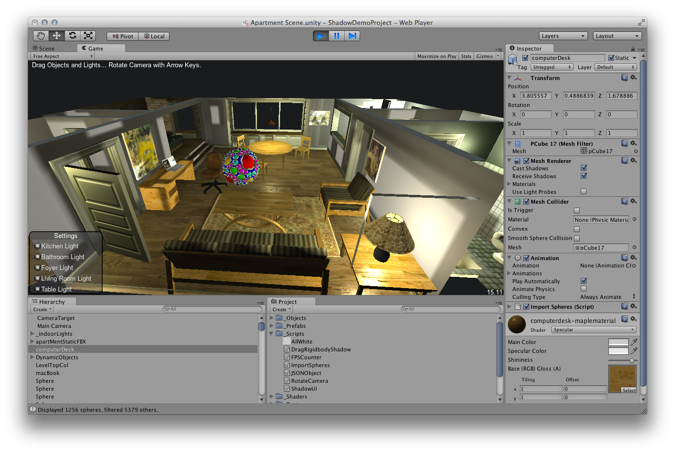 From a programming perspective it was easy: I used C# – Unity uses Mono to make this work when not on Windows – but might also have chosen JavaScript. The development environment – when I needed to work on code outside the Unity scene editor – was MonoDevelop: a fairly decent IDE.
