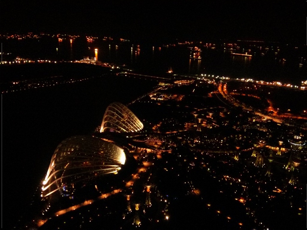 Here's a quick shot from the top of the Marin Bay Sands, the hotel I pictured in the last post, out towards the sea (yes, those are moored cargo containers out there – pretty cool).