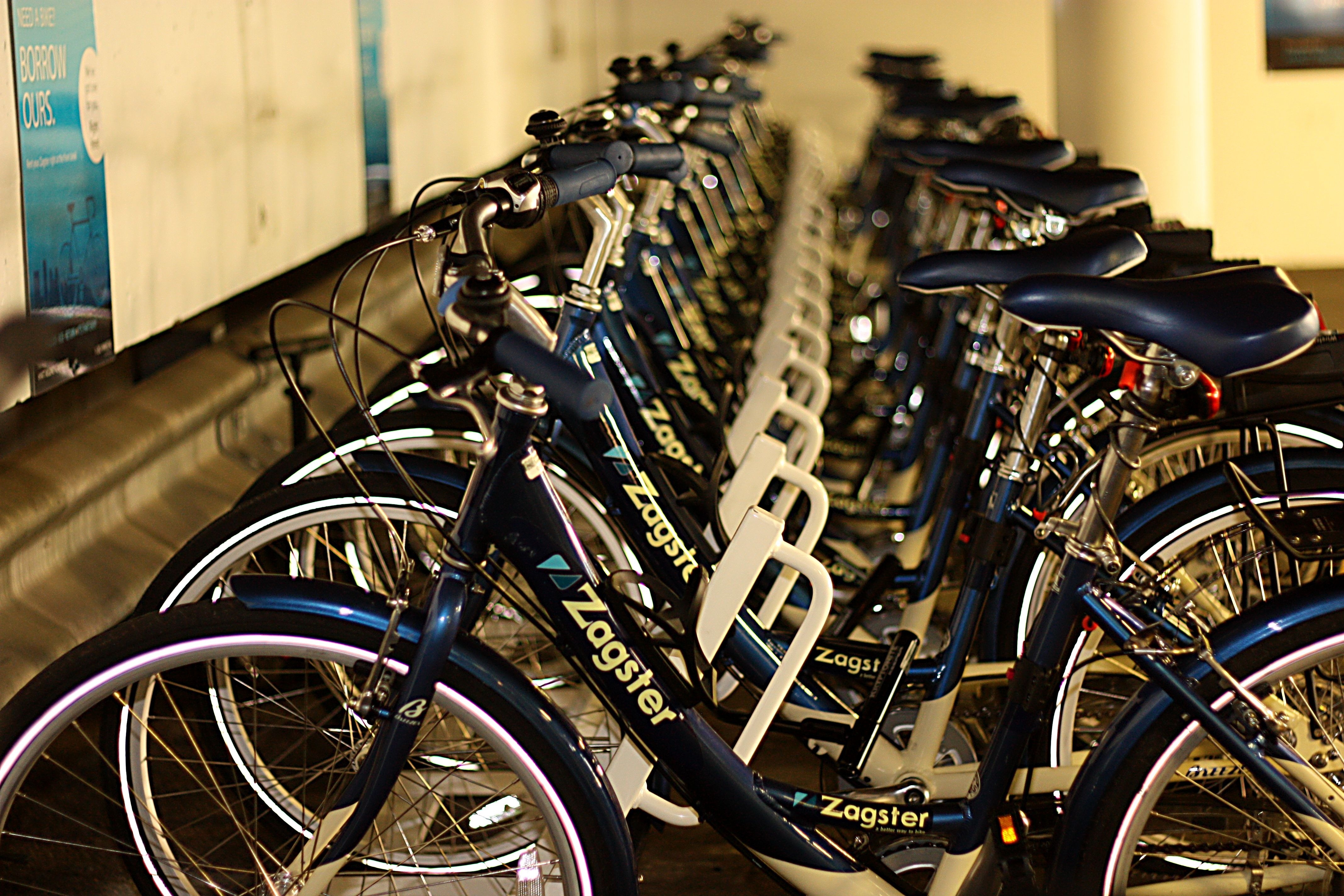 An alternative bicycle-sharing system in Boston is Hubway, which lets you pick up bikes and check them back in at locations all over the city. This can prove very cost-effective if you manage to time your trips to be less than 30 minutes between hubs, but I suspect I ended up being better off with Zagster for my particular usage pattern.