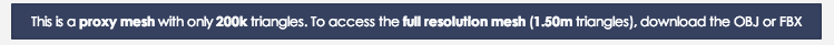 Here's the Standard quality mesh in the viewer provided with the FBX Convertor tool (this version of the mesh was 35MB – with about the same amount of texture data – rather than 110MB for the Maximum quality version [ditto for the textures]):