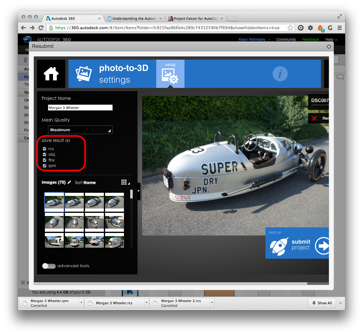 In my case, what I personally wanted to do was first hinted at in this post: display a model of the Morgan 3 Wheeler in a virtual wind tunnel using Project Falcon (a project on Autodesk Labs which is – at the time of writing – scheduled to run until August 30, 2013).