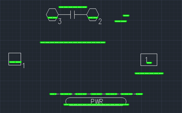 Here's what happens when we run the HDT command selecting 3 as the highlight colour to display the dashed text objects in green:
