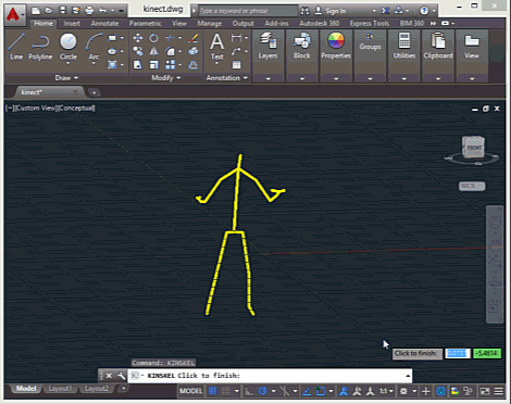 For instance, let's take a look at skeleton tracking, which can be shown inside AutoCAD using the KINSKEL command: