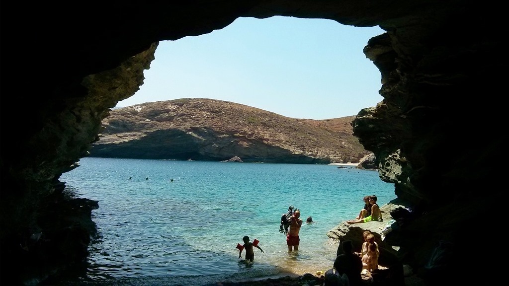 This was hands-down our favourite beach on the island. When we arrived there on the first full day on Andros – by a dirt road but nothing bad when compared with Achla and even Zorkos – friends led us to a cave on the far left of the beach where we camped out in the shade as the older kids (and braver adults) jumped off rocks into the sea. Incredible.