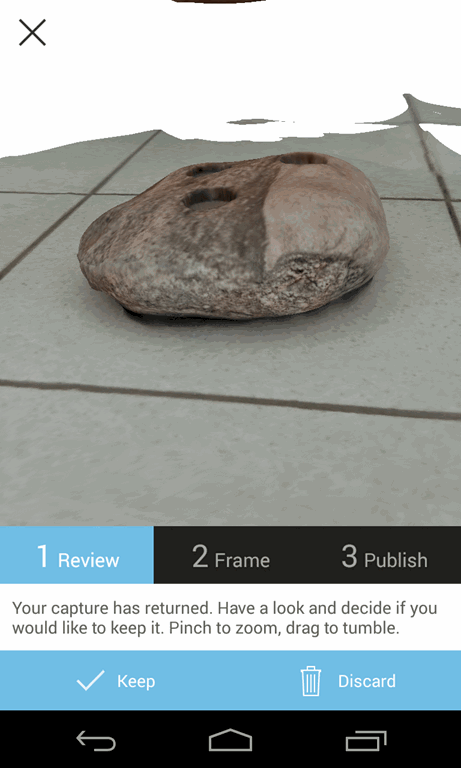 I was very happy to read the news on Shaan's blog: 123D Catch is now available on Android. I blogged about its availability via the web and on iOS, a couple of years ago, but there's now an Android version and it's pretty slick.