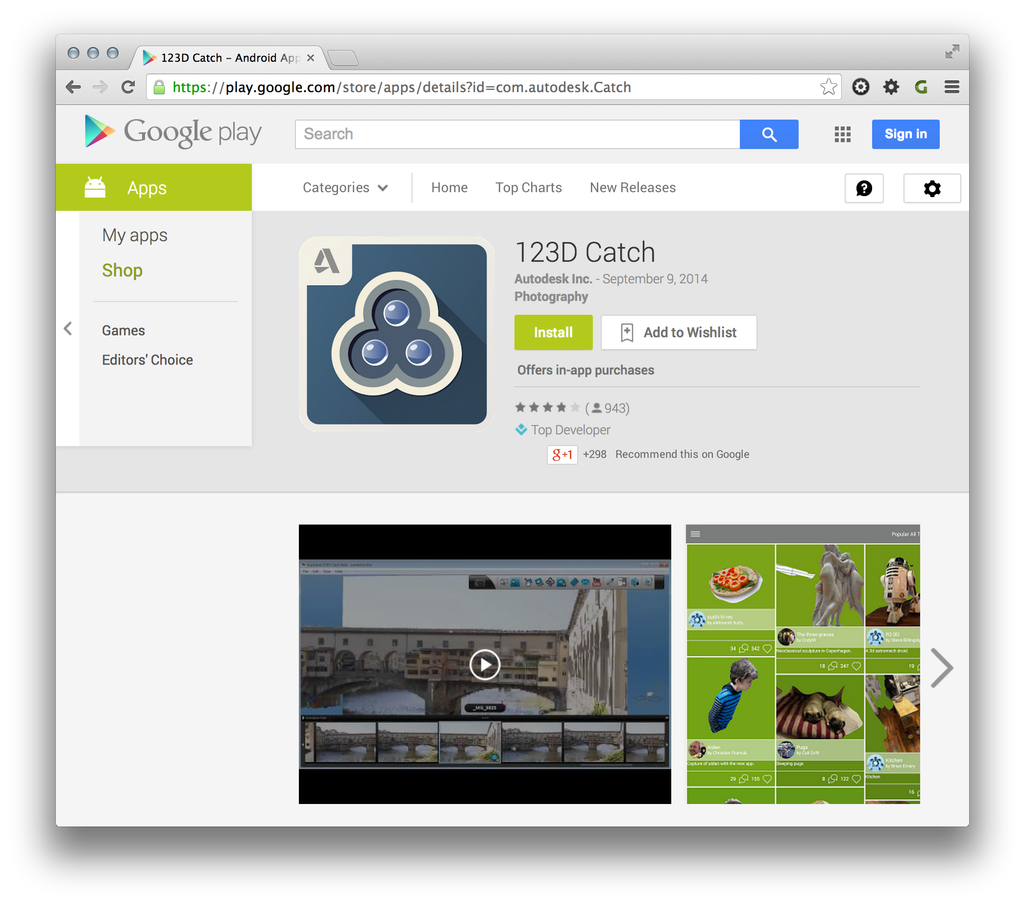 So yes, the main device I walk around with, these days, runs Android and has been waiting patiently for 123D Catch to show up on Google Play.