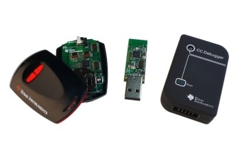 These two components are bundled together in a couple of different packages. The first possibility was the CC2541 Mini Development Kit, which – for $99 – includes a dongle, a debugger and a "keyfob" device with a few basic components (LEDs, a buzzer, two buttons and an accelerometer).med_cc2541dk-mini_cc2541dk-mini_web