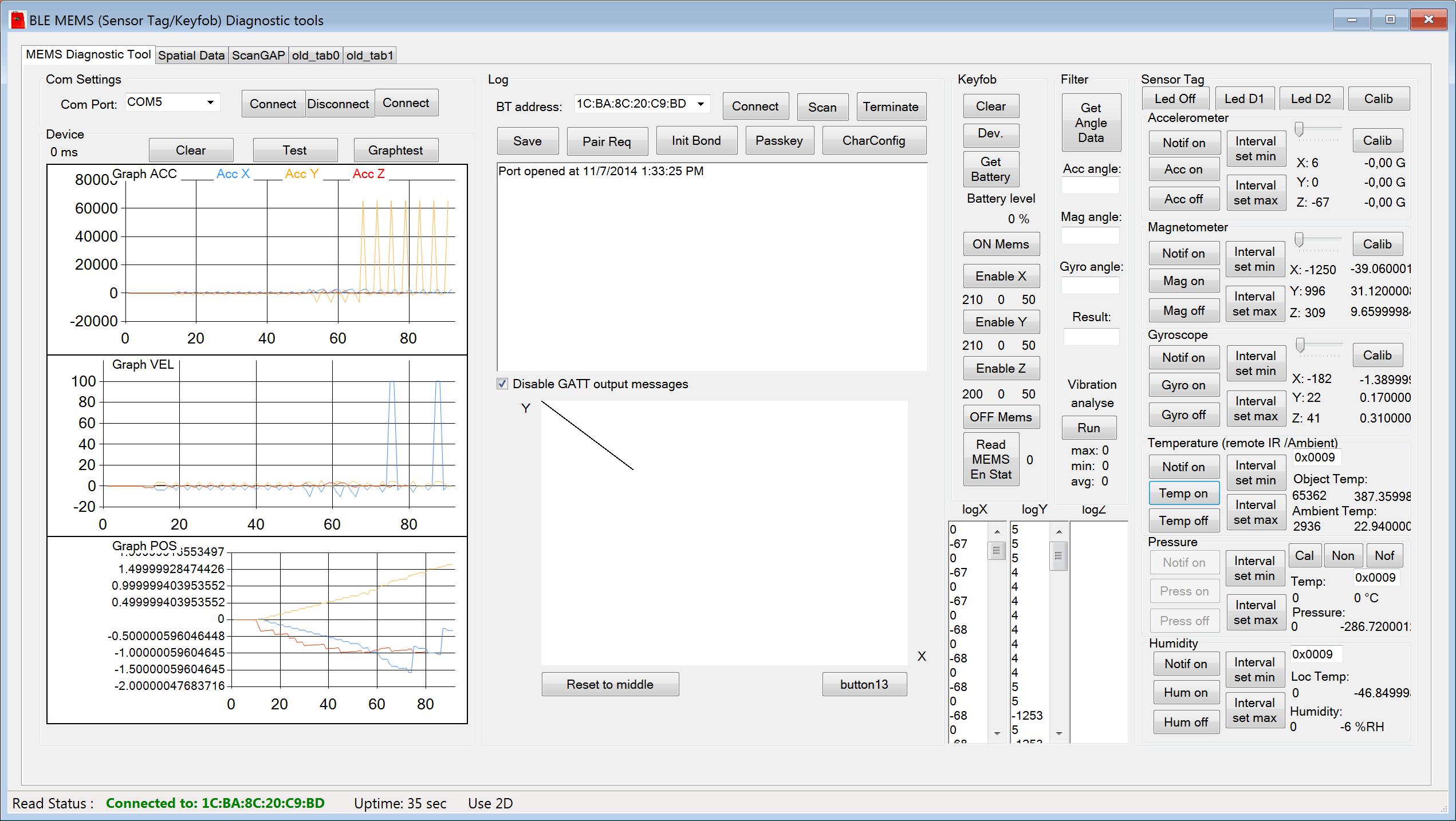 BLE Device Monitor is the desktop equivalent of the tool we saw earlier for iOS/Android. It allows you to discover and understand the SensorTag's services, as well as to upgrade the firmware (providing it already has appropriate firmware – for earlier versions you'll need SmartRF Studio).