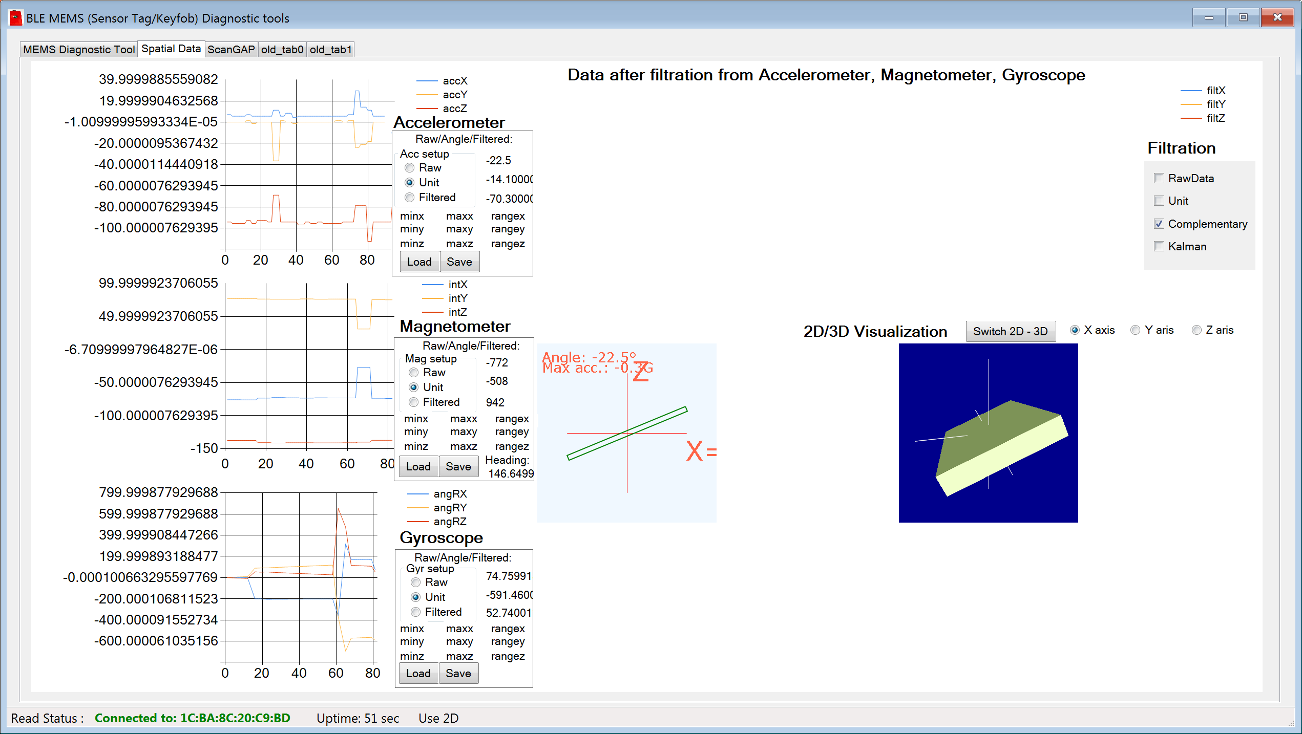 It's this tab that shows some of the potential for our purposes: we have a 3D view representing the orientation of the SensorTag device.