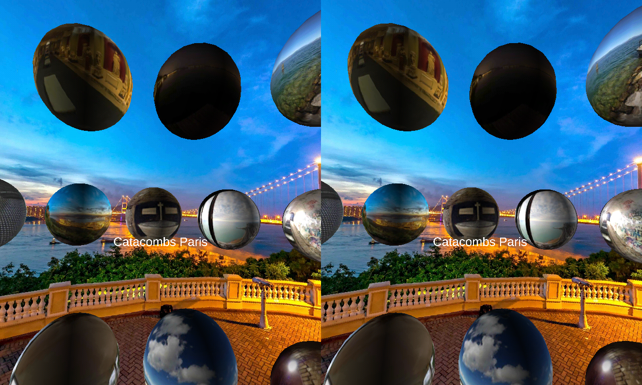 Perhaps the most View-Master-like of the apps I've seen – in spirit, at least – is Orbulus, which allows you to view any of a large number of photo spheres that have been captured and shared by people. There's a slight camera offset between the views for the two eyes, but I don't believe two separate spheres have been captured: the 3D effect isn't that strong. It's still a nice way to view spherical panoramas, though.