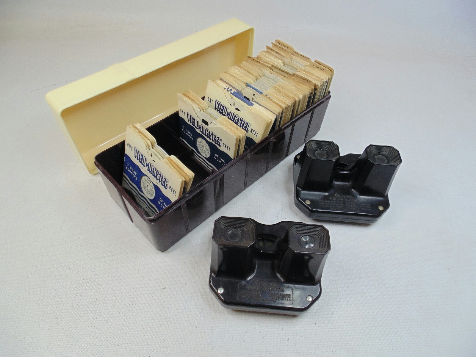 Over the last couple of weeks I've gone a little nuts on eBay, picking up Model A, B & C View-Masters (I'm most interested by models from the 1940s & '50s) and lots of classic reels. The first few auctions were a bit brutal: the interesting auctions finished in the afternoon, Pacific time, so I had to set my alarm for 2:30am to be able to place bids in the closing seconds. (I've since started using an app that can "snipe" eBay auctions without you being online, which seems to work very well and lets me sleep a little more.)
