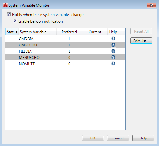 On the subject of sysvars, I do think the System Variable Monitor – which we mentioned last time – will be a useful diagnostic tool for developers. If you know you're using sysvars in your code – such as CMDECHO, CMDDIA, FILEDIA, etc. – try adding them to the monitor and see whether you get any notifications about your commands not setting them back properly. If you get any you can bet your users will, too.