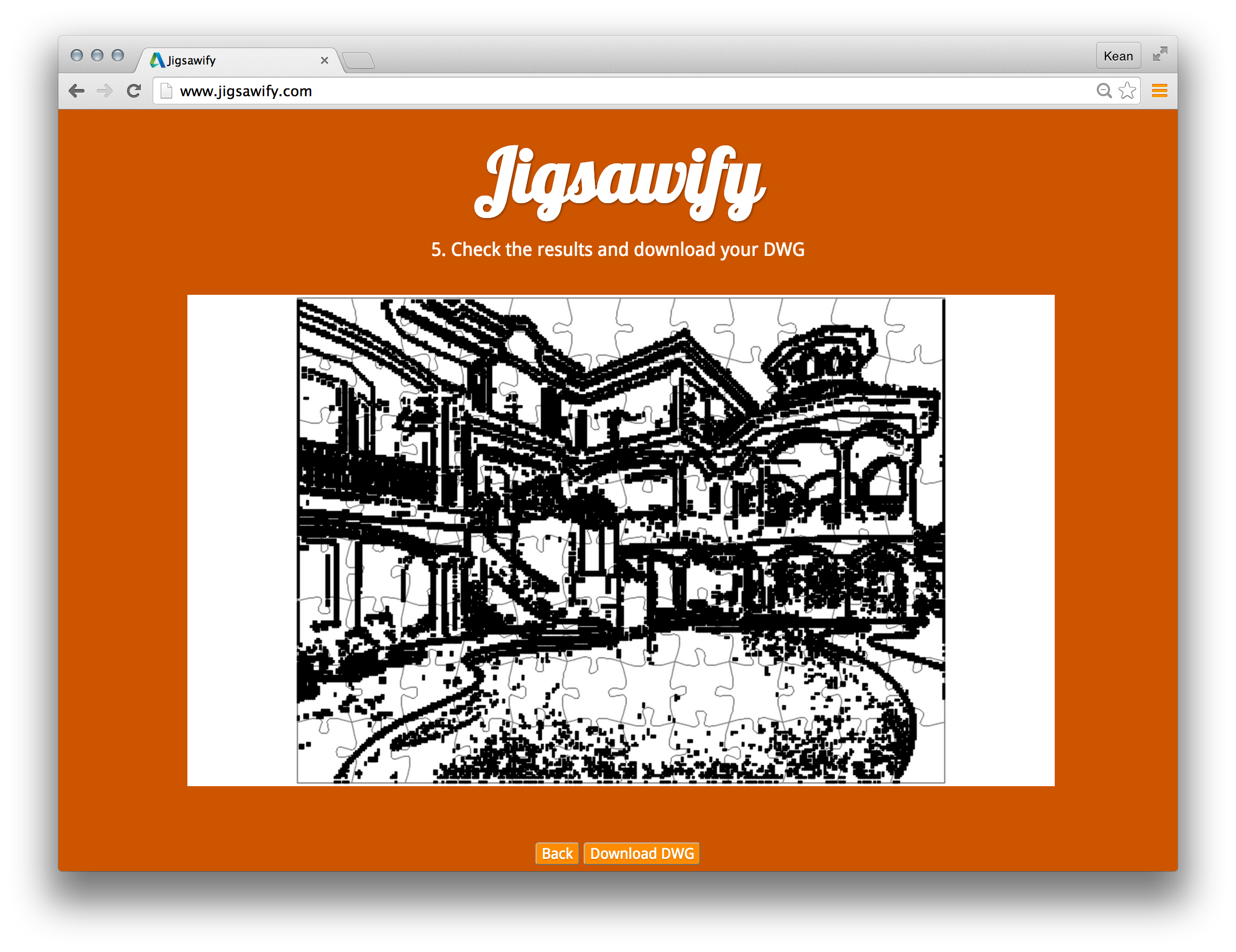 To show the code still works well, here's a quick puzzle I generated for a nice house photo I found on the internet. (If you try it for yourself you can take a look at the DWG file that gets generated. ๐