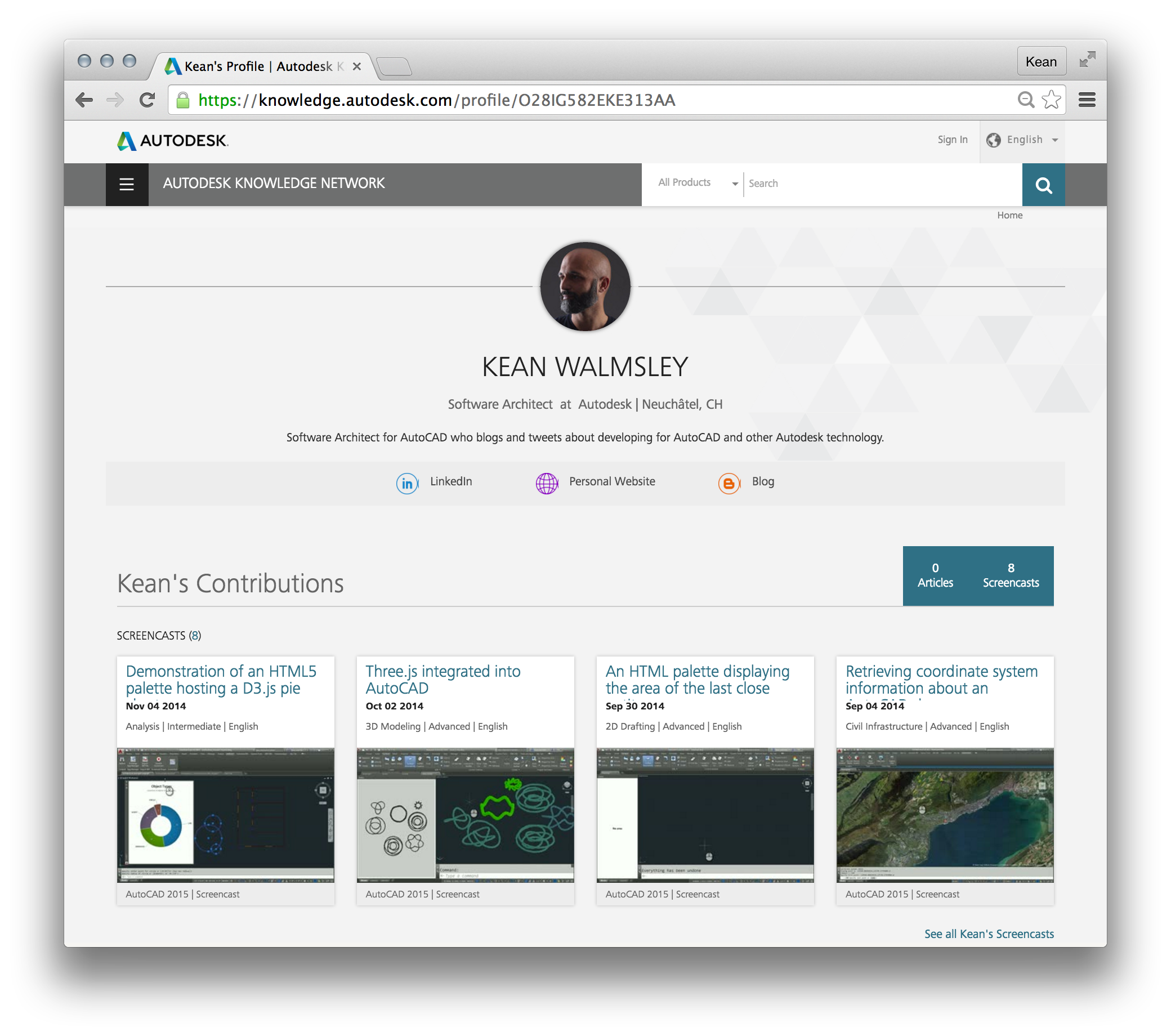 Here's my AKN profile, showing that I've contributed some screencasts but (so far) no articles. We'll have to see what we can do about that. 🙂