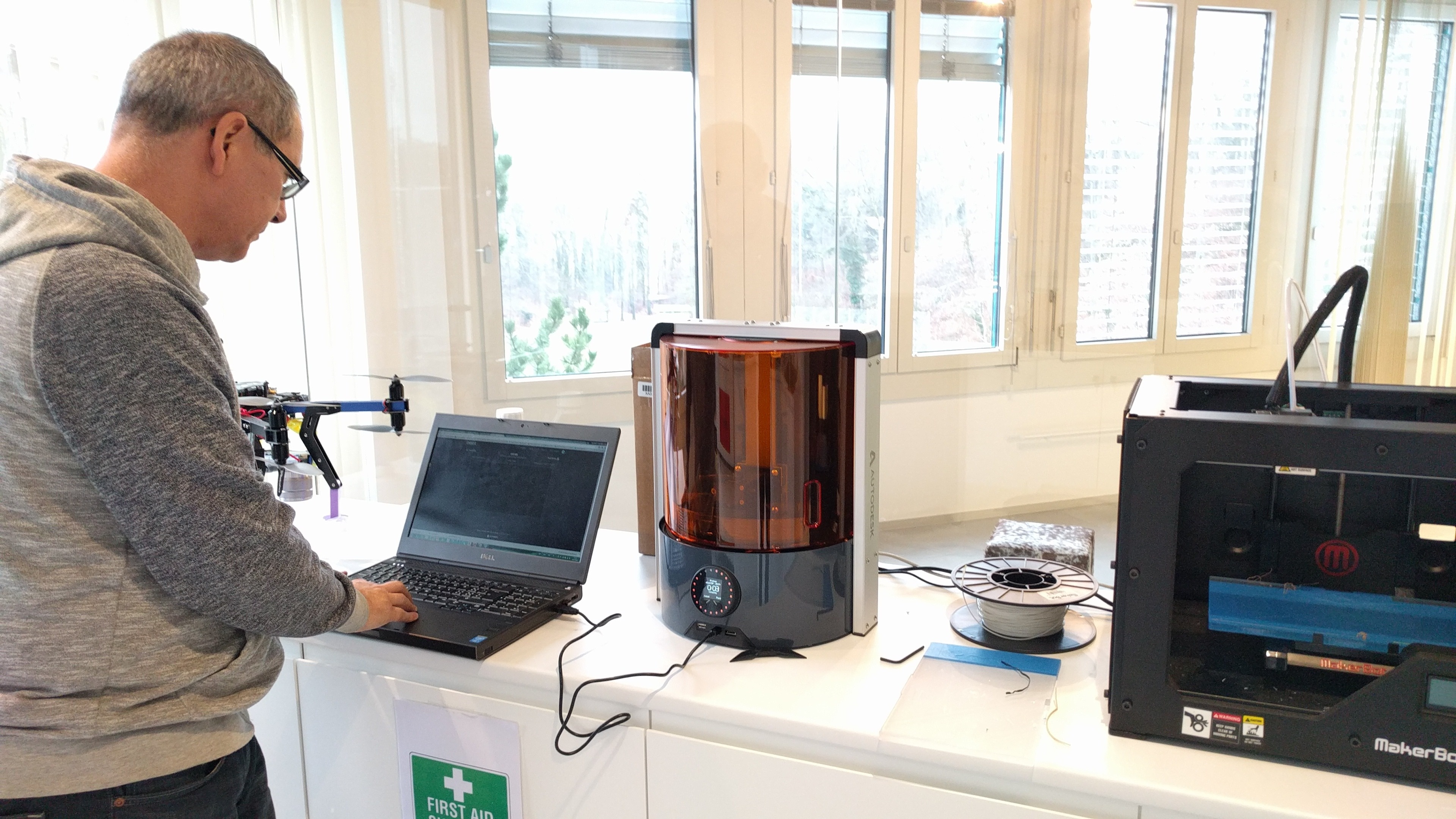 My friend and colleague, Fernando Oliveira, had the honour of printing the first object from the Ember printer we have in the Autodesk Neuchâtel office. To capture the moment, I decided to take a few snaps that I'll share here.