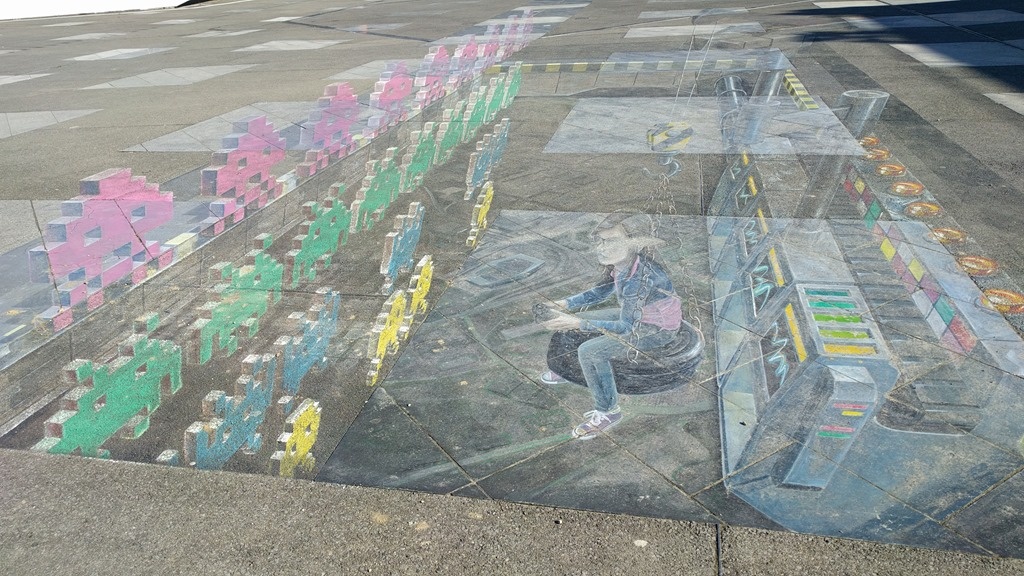Wandering through the campus, I also noticed some street art by Leon Keer. (I couldn't take the picture from the "sweet spot" as it was fenced off for some construction work.)