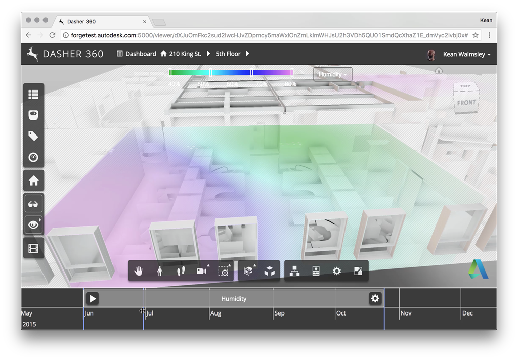 As you can see we have an adjustable range on the timeline, along with animation – with differently (and, for now, arbitrarily) coloured gradient scales for the various sensor types. I extended the code generating the legend to work with different sensor types and units, allowing custom colours for each which then get passed onto the shader (rather than having these defined in multiple places).
