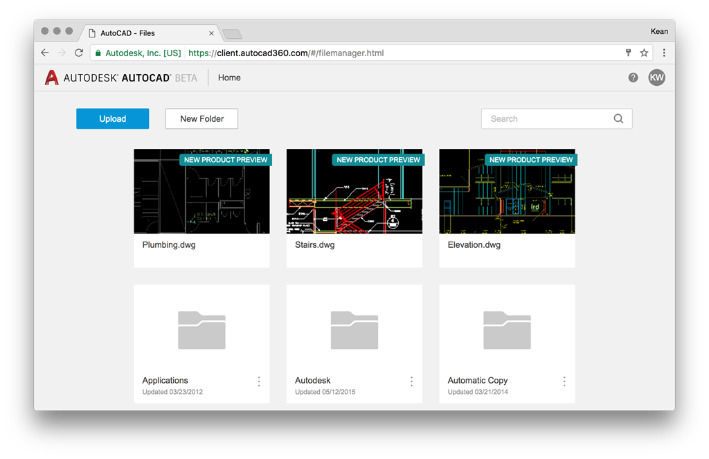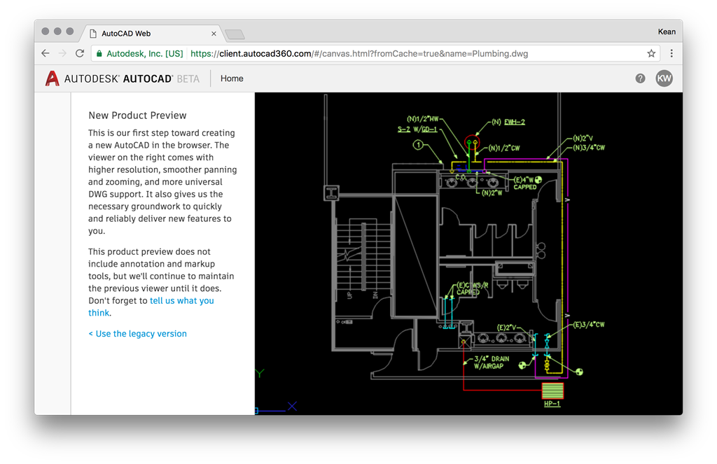 You can use it to view your own drawings – whether hosted in A360 or uploaded via the file manager. You'll see the "classic" AutoCAD 360 window come up, but can then click on the "See what's new >" link on the top-right of the page, and it'll load your drawing into the new viewer.