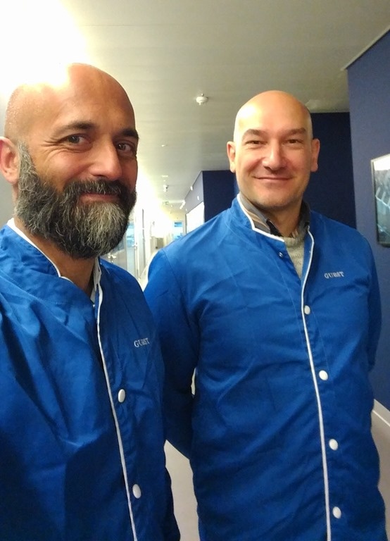 We wore smocks and shoe covers during much of our tour. Both Francesco and I are available for birthday and weddings, if you're short of waiters. 🙂