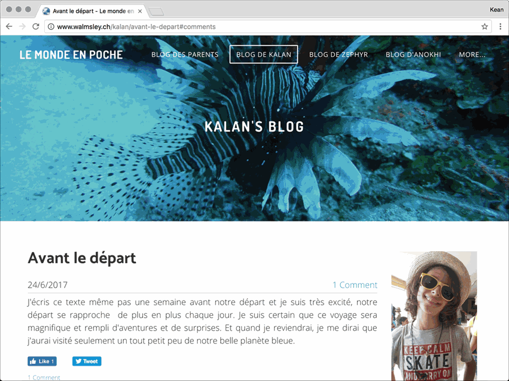 If you'd like to get to know my family a bit better, be sure to visit their blogs. Kalan, Zephyr and Anokhi have all written introductory posts – so far in French, but as we're a bilingual family I expect some will end up in English, too – and we've also integrated an Instagram feed for the trip into the site.
