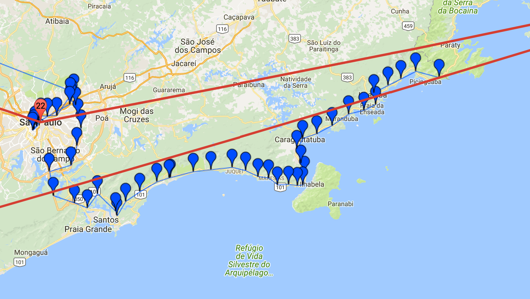 Here's the area of the map we're in at the moment – we arrived yesterday in Paraty, a lovely town along the coast between Sao Paolo and Rio de Janeiro. I'll talk more about this in the next post.